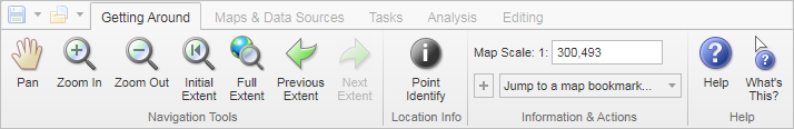 The Getting Around tab of the toolbar contains tools to facilitate navigation. Most of the tools are activated when you click them.