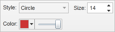 Draw a point on the map. The shape, size, color and transparency of the point can be set using tools that appear on the toolbar when you select one of the drawing tools. These tools change based on which drawing tool you select. |